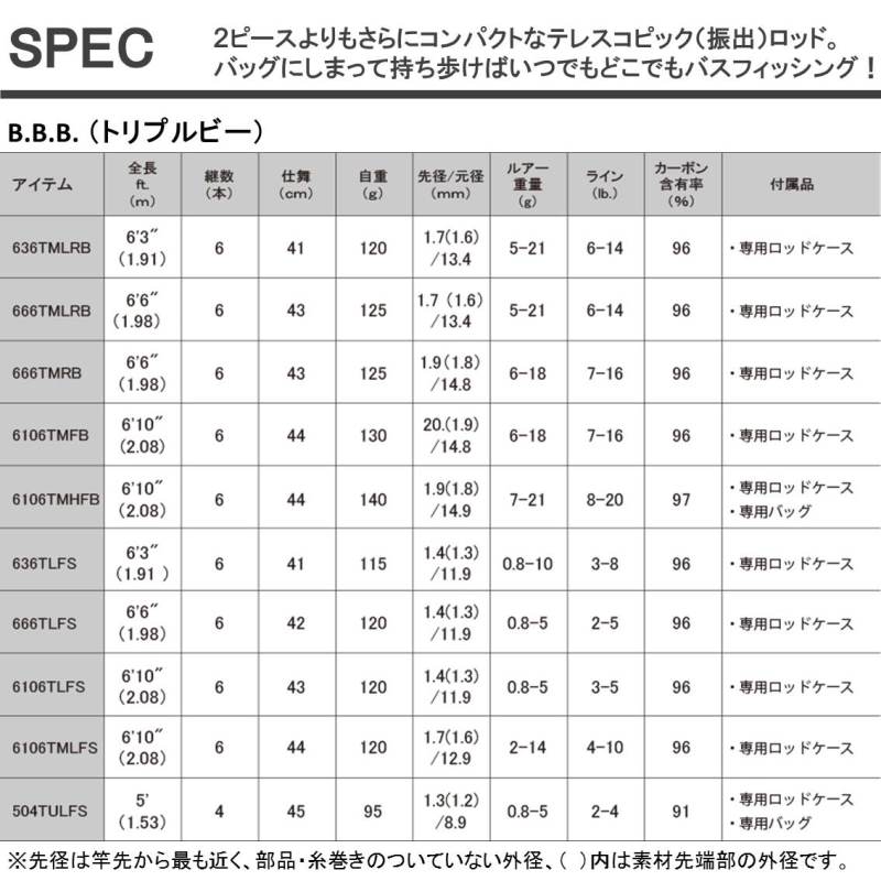 Телескопическое удилище еще более компактное, чем двухсекционное. Вы можете наслаждаться ловлей окуня в любое время и в любом месте, положив его в специальную сумку и перенося с собой. Daiwa "BBB (Triple Bee)" - это полноценная реализация такой мечты рыболова. Это мобильная снасть, которая позволяет вам свободно наслаждаться рыбалкой независимо от того что вы хотите ловить,  будь это река , горная форель или   легкие игры в море и т. д.